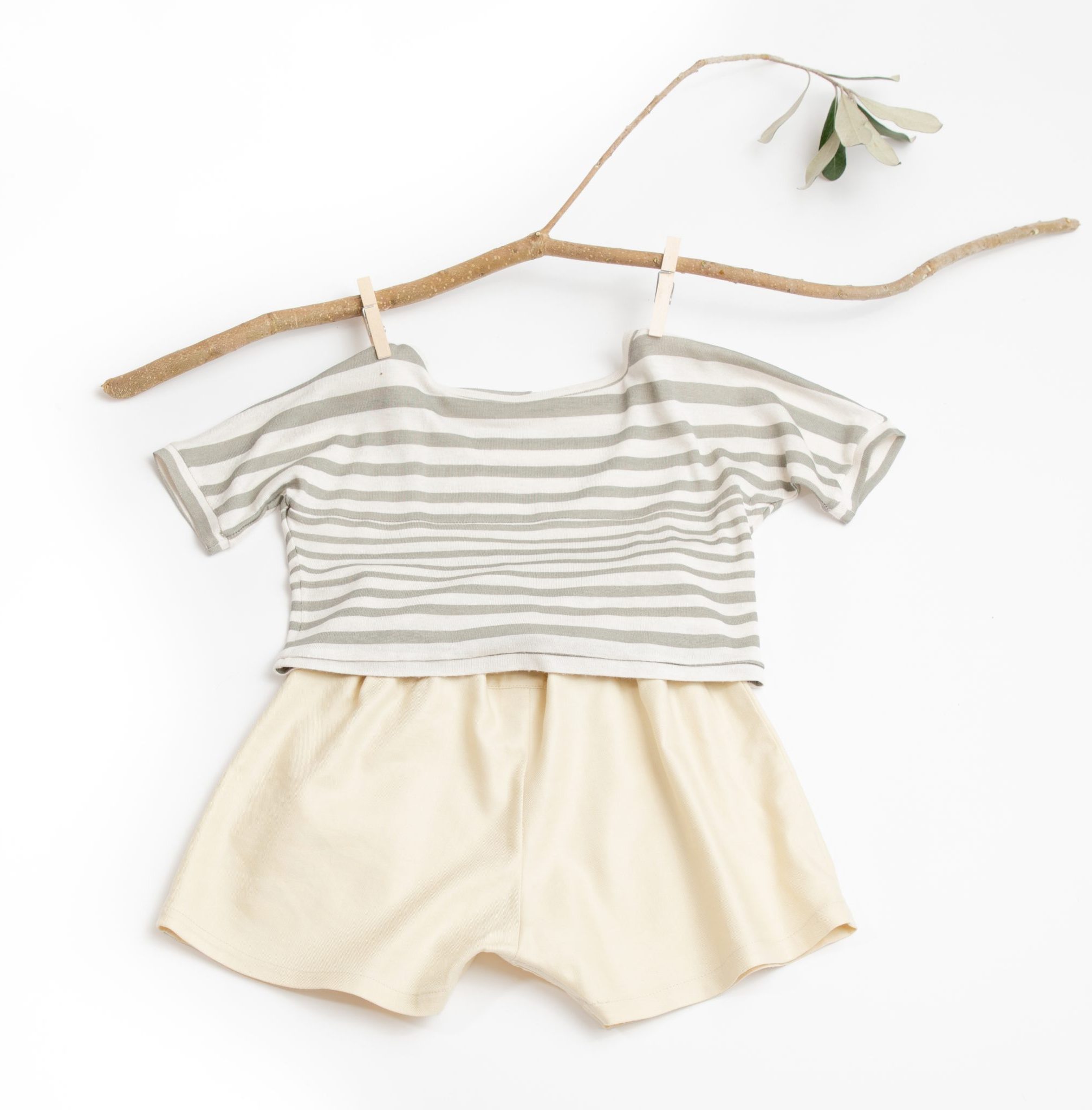 Team with our Thyme Stripe Tee. Available also in Ivory.