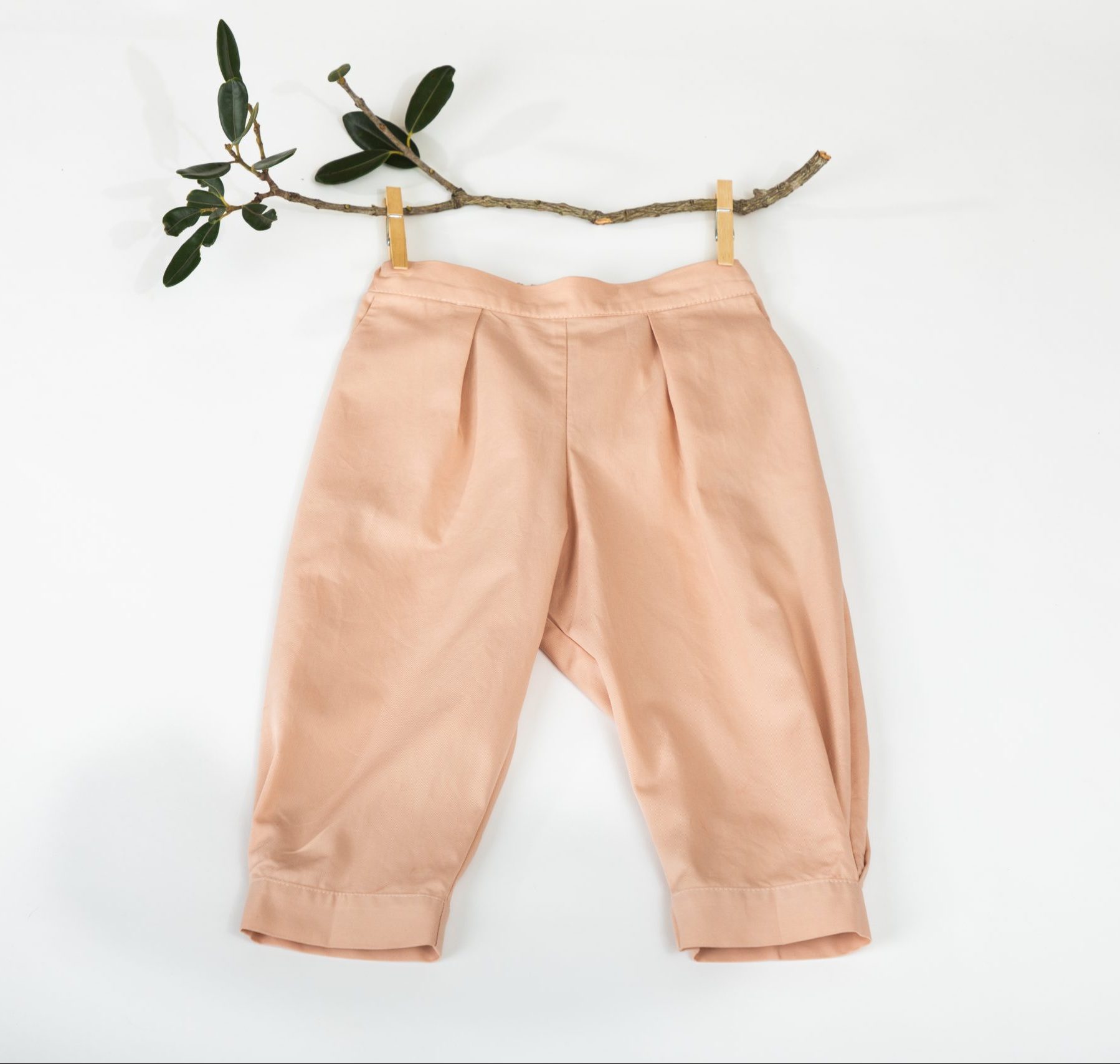 A cute pair of pants with a side pleat at the cuff that sits above the ankle. Shaped front pocket and flat front waistband with elasticated back, for ease.