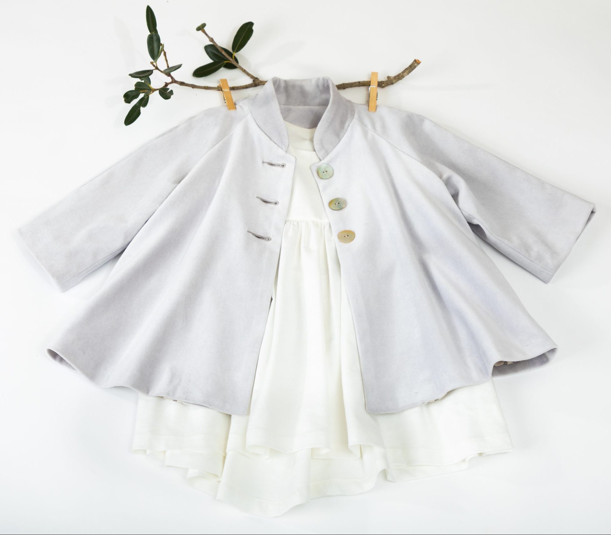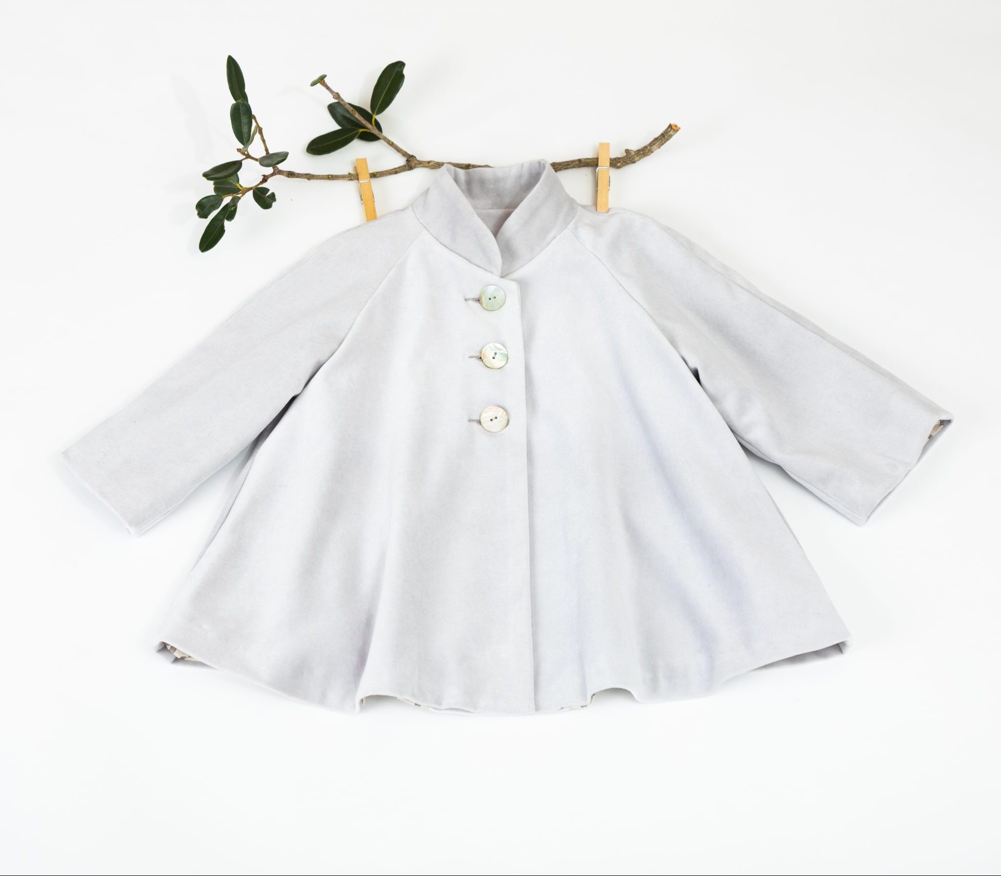 Our soft lavender, swing coat describes itself. Lined with a soft striped eucalyptus/tencel makes it is easy to put on.