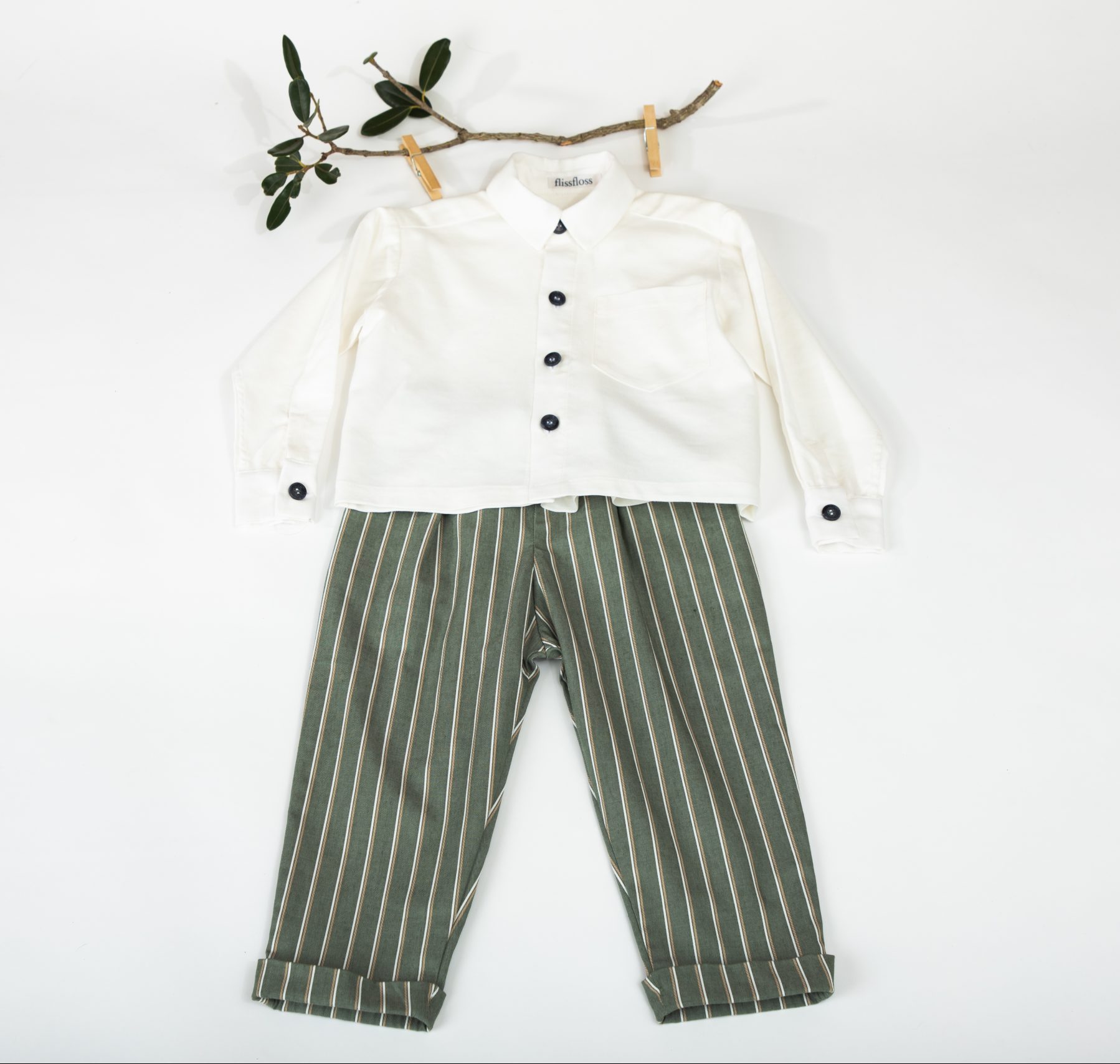 Team with our Classic shirt Ivory, or Thyme Stripe Tee.